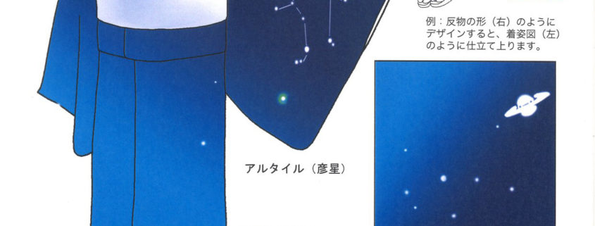 ●全体にぼかしにはできないため濃紺地に絞り、色入れ無しで表現します。夜空に銀河鉄道と星座が浮かびます。